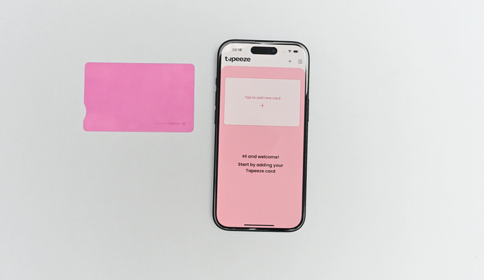 Lägg till ditt Tapeeze-kort enkelt i appen. Tryck på + tecknet på hemskärmen och följ anvisningarna.